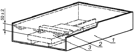 1 — подставка из нержавеющей стали; 2 — образец; 3 — перфорированная сетка из нержавеющей стали