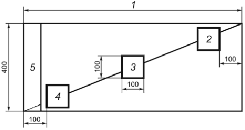 1 — ширина полотна материала; 2, 3, 4 — образцы; 5 — кромка