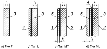 4.3.3 Значения толщин других стекол, составляющих стекла типов L, МТ и ML, устанавливает изготовитель.