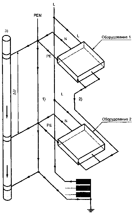| ГОСТ Р 50571.20-2000 (МЭК 60364-4-444-96) УДК 696.6:006.354 Группа Е08 ГОСУДАРСТВЕННЫЙ СТАНДАРТ РОССИЙСКОЙ ФЕДЕРАЦИИ Электроустановки зданий Часть 4 ТРЕБОВАНИЯ ПО ОБЕСПЕЧЕНИЮ БЕЗОПАСНОСТИ Глава 44 Защита от перенапряжений Раздел 444 Защита электроустановок от перенапряжений, вызванных электромагнитными воздействиями Electrical installations of buildings. Part 4. Protection for safety. Chapter 44. Protection against overvoltages. Section 444. Protection against electromagnetic interferences (EMI) in installations of buildings ОКСТУ 3402 ОКС 91.140.50 29.120.50 Дата введения 2002—01—01 Предисловие 1 РАЗРАБОТАН Всероссийским научно-исследовательским институтом электрификации сельского хозяйства (ВИЭСХ) и Всероссийским научно-исследовательским институтом стандартизации и сертификации в машиностроении (ВНИИНМАШ) ВНЕСЕН Техническим комитетом по стандартизации ТК 337 «Электроустановки жилых и общественных зданий» 2 ПРИНЯТ И ВВЕДЕН В ДЕЙСТВИЕ Постановлением Госстандарта России от 18 декабря 2000 г. № 373-ст 3 Настоящий стандарт представляет собой аутентичный текст международного стандарта МЭК 60364-4-444—96 «Электрические установки зданий. Часть 4. Требования по обеспечению безопасности. Глава 44. Защита от перенапряжений. Раздел 444. Защита установок зданий от электромагнитного излучения» с дополнительными требованиями, учитывающими потребности экономики страны 4 ВВЕДЕН ВПЕРВЫЕ Введение Настоящий стандарт является частью комплекса государственных стандартов на электроустановки зданий, разрабатываемых на основе стандартов Международной электротехнической комиссии МЭК 364 «Электроустановки зданий». Он представляет собой аутентичный текст международного стандарта МЭК 60364-4-444—96, кроме раздела 1, уточняющего особенности применения настоящего стандарта в национальной энергетике, раздела 3, который исключает разночтения в толковании терминов, и требований (выделенных курсивом), отражающих потребности различных отраслей экономики страны, в том числе и сельскохозяйственного производства. Нумерация разделов, пунктов и подпунктов в настоящем стандарте, начиная с раздела 442.1, полностью соответствует принятой в МЭК 60364-4-444—96. В настоящем стандарте принята та же нумерация рисунков, те же условные обозначения, что и в МЭК 60364-4-444—96. В некоторые схемы настоящего стандарта внесены коррективы. Так, например, на рисунке 1а показано, что падение напряжения DU вдоль PEN проводника в системе заземления TN-C равно сумме падений DU1 + DU2 т. е. больше на DU2, чем в системе TN-C-S. Требования настоящего стандарта дополняют, изменяют или заменяют требования других частных стандартов комплекса государственных стандартов на электроустановки зданий. Отсутствие ссылки на главу, раздел или пункт частного стандарта означает, что соответствующие требования стандарта распространяются и на данный случай. 1 Область применения Настоящий стандарт распространяется на электроустановки зданий, применяемые во всех отраслях экономики страны, независимо от их принадлежности и форм собственности, и устанавливает требования по обеспечению безопасности путем защиты от перенапряжений, вызванных электромагнитными воздействиями. Стандарт предназначен для проектных, монтажных, пусконаладочных и эксплуатационных организаций любых форм собственности, и специалистов, разрабатывающих, испытывающих и эксплуатирующих специальные машины и механизмы, являющиеся источниками мощных электромагнитных п