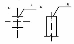 4.6.3 Действительные отклонения от проектных отметок показываются числовым значением в см для грунтовых и других поверхностей рельефа и в мм — для других элементов со знаком "плюс" в случае превышения или "минус" в случае занижения. Направляющую линию соединяют с точкой поверхности, к которой относится отклонение (рисунок 2).