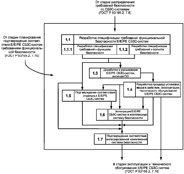 — устанавливает требования к действиям и процедурам, которые должны быть выполнены на этих стадиях для обеспечения функциональной безопасности Е/Е/РЕ СБЗС-систем, а также оценки и подтверждения соответствия на стадиях их жизненного цикла, за исключением требований к программному обеспечению (далее — ПО), которые должны быть установлены в нормативных документах на ПО;