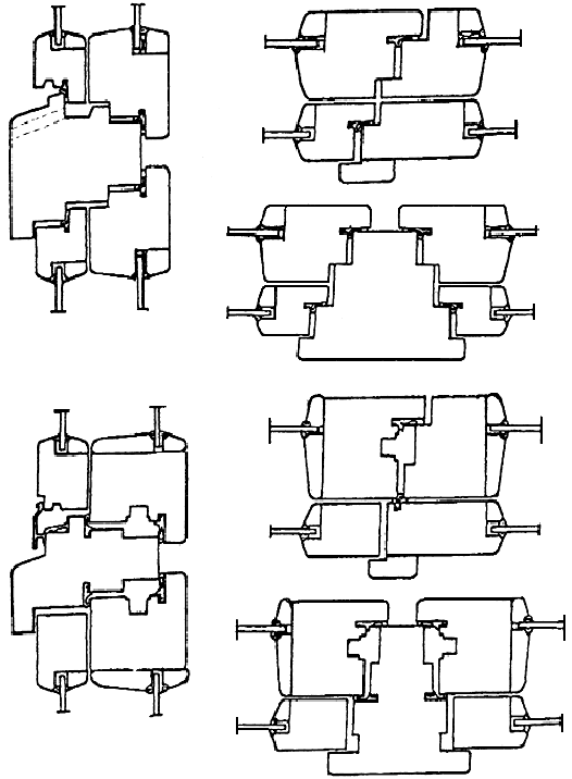 Рисунок 1 — Примеры конструктивных решений оконных блоков спаренной конструкции с разнотолщинными