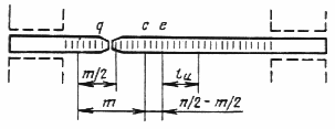 от места разрыва до крайней метки q у захвата определяют число интервалов, которое обозначают т/2. От точки q к месту разрыва откладывают т интервалов и ставят метку с. Затем от метки с откладывают n/2 — т/2 интервалов и ставят метку е.