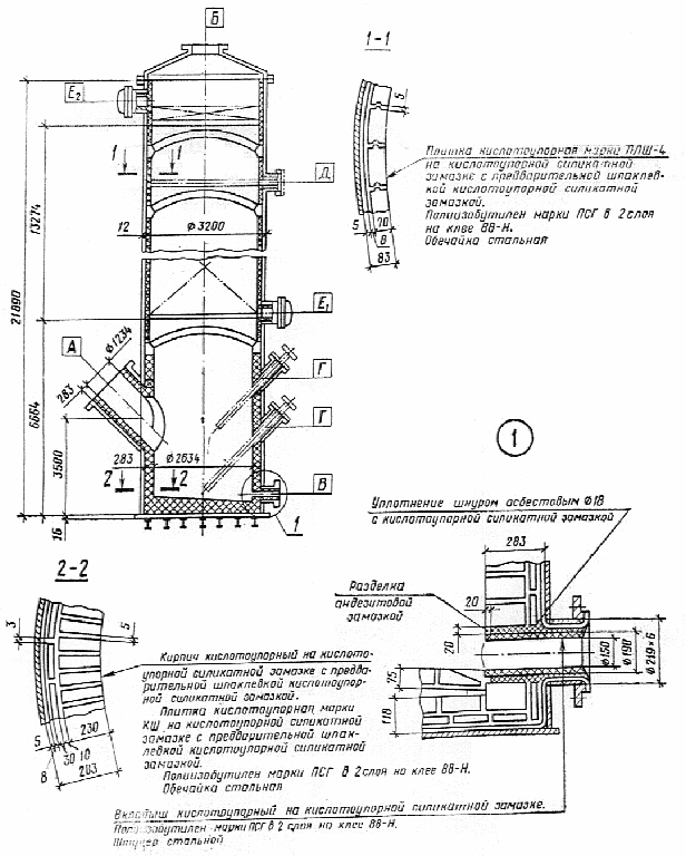 3.3. На чертеже разреза аппарата (черт. 1) указывают: