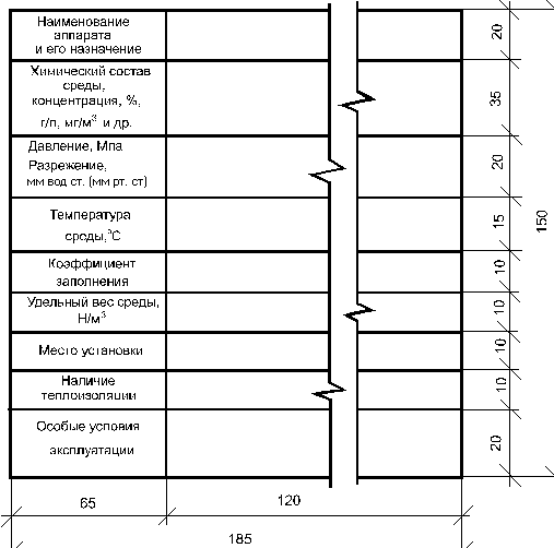 Пример заполнения таблицы условий эксплуатации технологического аппарата