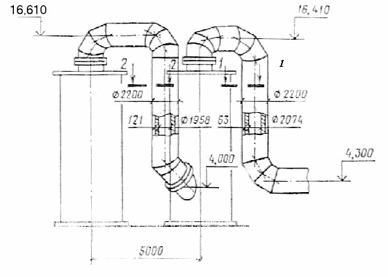 Газоход от 1-й промывной башни ко 2-й промывной башне