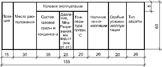 Пример заполнения таблицы условий эксплуатации