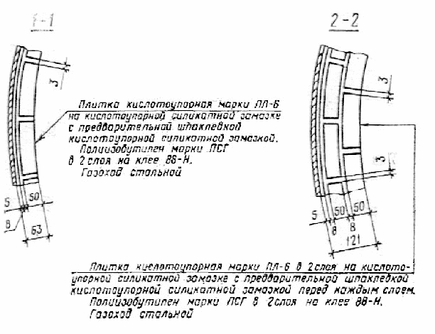 | Оклеечное, футеровочное, комбинированное футеровочное покрытие стандартными штучными материалами или кислотоупорным бетоном, гомогенное освинцевание или обкладка свинцом и другими цветными металлами