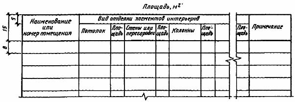 1.  Количество граф определяется наличием элементов интерьера, подлежащих отделке.