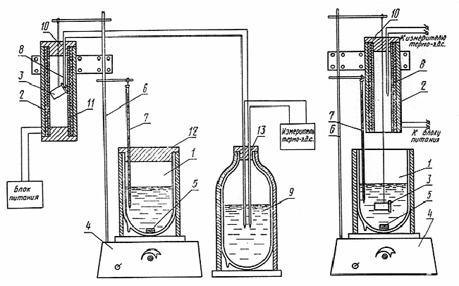 8 — термопара; 9 — термос с холодными спаями термопары; 10 — крышка (верхняя)