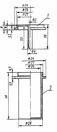 водонепроницаемую  цилиндрическую капсулу для образца испытываемого материала (см. черт.2). Капсула представляет собой медный или латунный стакан емкостью 25-27 с навинчивающейся крышкой. В центре крышки припаяна гильза для термопары. Между фланцами крышки и стакана должна быть прокладка из паранита, обеспечивающая водонепроницаемость капсулы. Скобу для подвески капсулы припаивают так, чтобы подвешенная капсула находилась в горизонтальном положении;