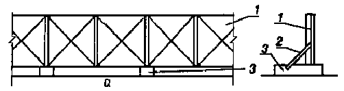1 — панель ограждения; 2 — подкос панели; 3 — опора (лежень); 4 — панель тротуара;