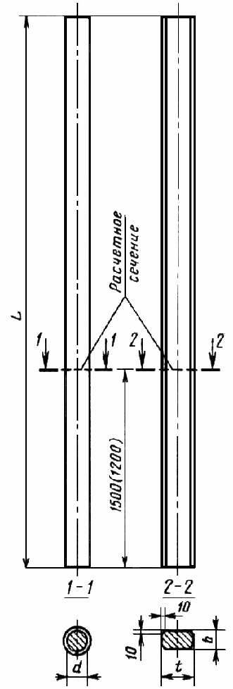 1.2. Опоры типа 1 изготавливают длиной 3500, 4000, 4500, 5000 и 5500 мм, типа 2 — длиной 5500, 6000, 6500, 7000, 7500, 8000 и 8500 мм.