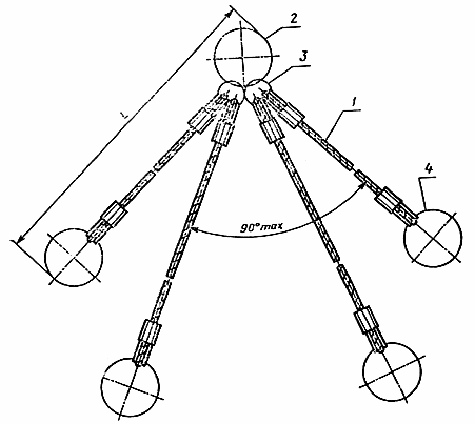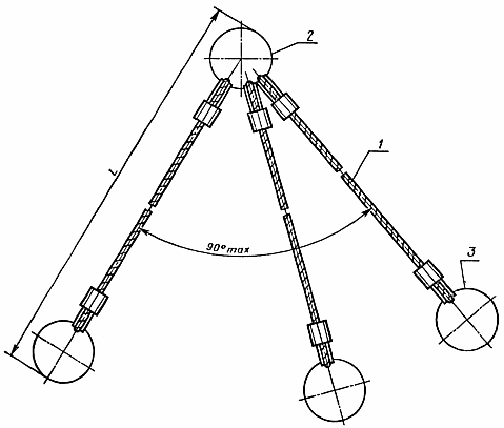 1- канатная ветвь; 2 — звено; 3 — захват