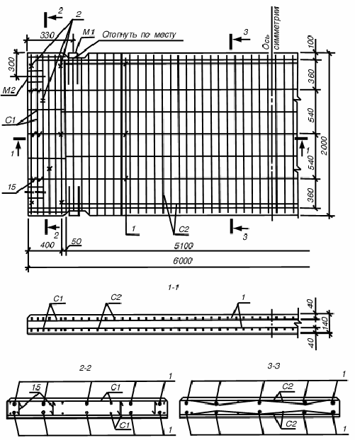 1 — напрягаемая арматура; 2 — крепление сеток С1
