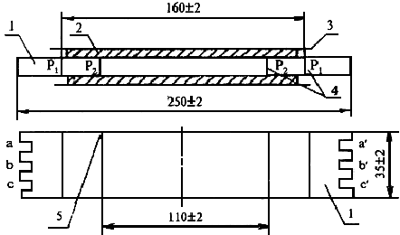 Подложки (2 шт.) в виде призмы длиной и шириной (50+2) мм и толщиной, обеспечивающей сохранение формы подложек в процессе изготовления и испытания образца. Масса одной подложки не должна превышать 170 г. Материал подложки указывают в нормативных документах на конкретный вид герметизирующего материала.