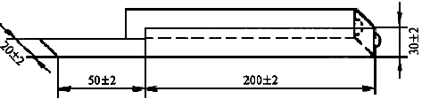 3.2.2.3 Пробе герметизирующего материала придают форму валика диаметром 30-35 мм и длиной не менее 50 мм, помещают на середину подложки и обжимают с двух сторон ограничительными планками. Во избежание прилипания герметизирующего материала к планкам они должны быть со стороны, примыкающей к герметизирующему материалу, смазаны индустриальным маслом и присыпаны наполнителем, применяемым для изготовления герметизирующего материала. Сверху пробу прижимают второй подложкой для придания ей формы прямоугольного параллелепипеда с размером поперечного сечения [(30х20)±2)] мм и длиной, равной длине подложки. Избыток герметизирующего материала удаляют ножом со сторон, не ограниченных планками.