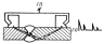 на машинах с горизонтальным перемещением активного захвата (ЛТП1-4 и др.) с клиновыми приспособлениями, приведенными на черт. а. Образец помещают между двумя опорами, закрепленными в корпусе, в котором при движении клина перемещается по вертикали пуансон и производят изгиб образца;