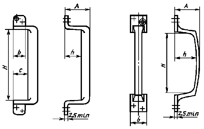 Примечание. Лапки для ручек-скоб типоразмеров РС 80 и РС 100 допускается изготовлять толщиной не менее 2 мм.