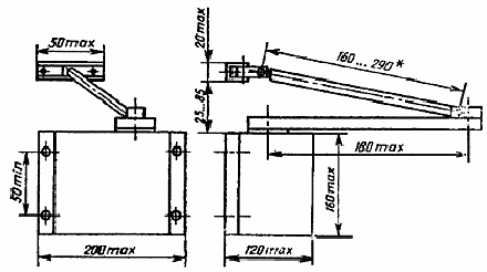 4. Конструкция дверных закрывателей типа ЗД1 должна обеспечивать плотное прилегание дверного полотна к коробке и регулирование угла раскрытия двери, а также возможность разъединения рычагов для полного раскрытия двери и регулирование продолжительности закрывания двери от 2 до 6 с.
