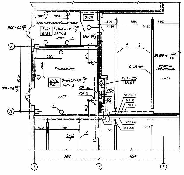 линии питающей, групповой сети и сети управления освещением (в жилых домах — включая линии для электроплит и других бытовых электроприемников), их обозначения, сечение и при необходимости марку и способ прокладки*;