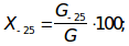 Полное содержание частиц размером менее 25 мм (Х-25п) или, соответственно, менее 5 мм (Х-5п) для щебня фракций от 5 до 25 мм в процентах вычисляют по формулам: