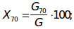 где G70, G60, G40, G25, G5 — остатки на ситах с отверстиями диаметрами, соответственно, 70; 60; 40; 25, а при анализе щебня фракции от 5 до 25 мм на сите с отверстиями диаметром 5 мм;
