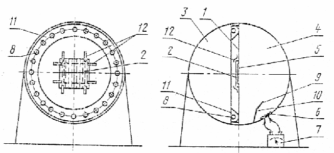 Шаровой диффузометр диаметром 1,5-2 м с диафрагмой толщиной не более 8 мм. Схема диффузометра указана на чертеже.