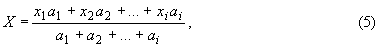 4.1.7  При определении показателя качества смеси фракций испытывают отдельно каждую фракцию и определяют средневзвешенное значение определяемого показателя в соответствии с содержанием фракции в смеси по формуле