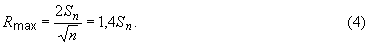 где — средний размах по всем парам параллельных результатов испытаний.