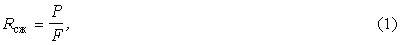 Предел прочности при сжатии образцов в партии вычисляют с точностью до 0,1 МПа (1 кгс/