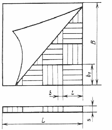 1.4. Паркетный ковер собирают из элементарных квадратов, укладываемых в шахматном порядке. По согласованию изготовителя с потребителем допускаются и др. варианты расположения планок.