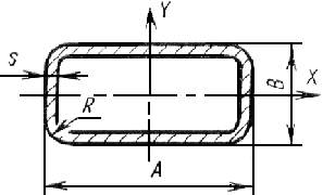 Трубы наружными размерами А = 40 мм, В = 25 мм с толщиной стенки 3 мм, длиной, кратной 1250 мм, из стали марки 10, группы В ГОСТ 13663-86: