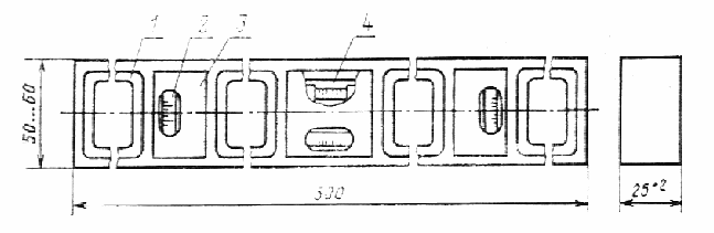 4.1. Размеры уровней должны проверяться с помощью металлической линейки с ценой деления 1 мм по ГОСТ 427 или штангенциркулем с ценой деления 0,05 или 0,1 мм по ГОСТ 166.