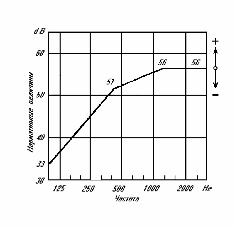 2.3.2. В расчет принимают только неблагоприятные отклонения. Отклонение считают неблагоприятным, когда результат измерения превышает величину нормативной кривой на данной частоте.